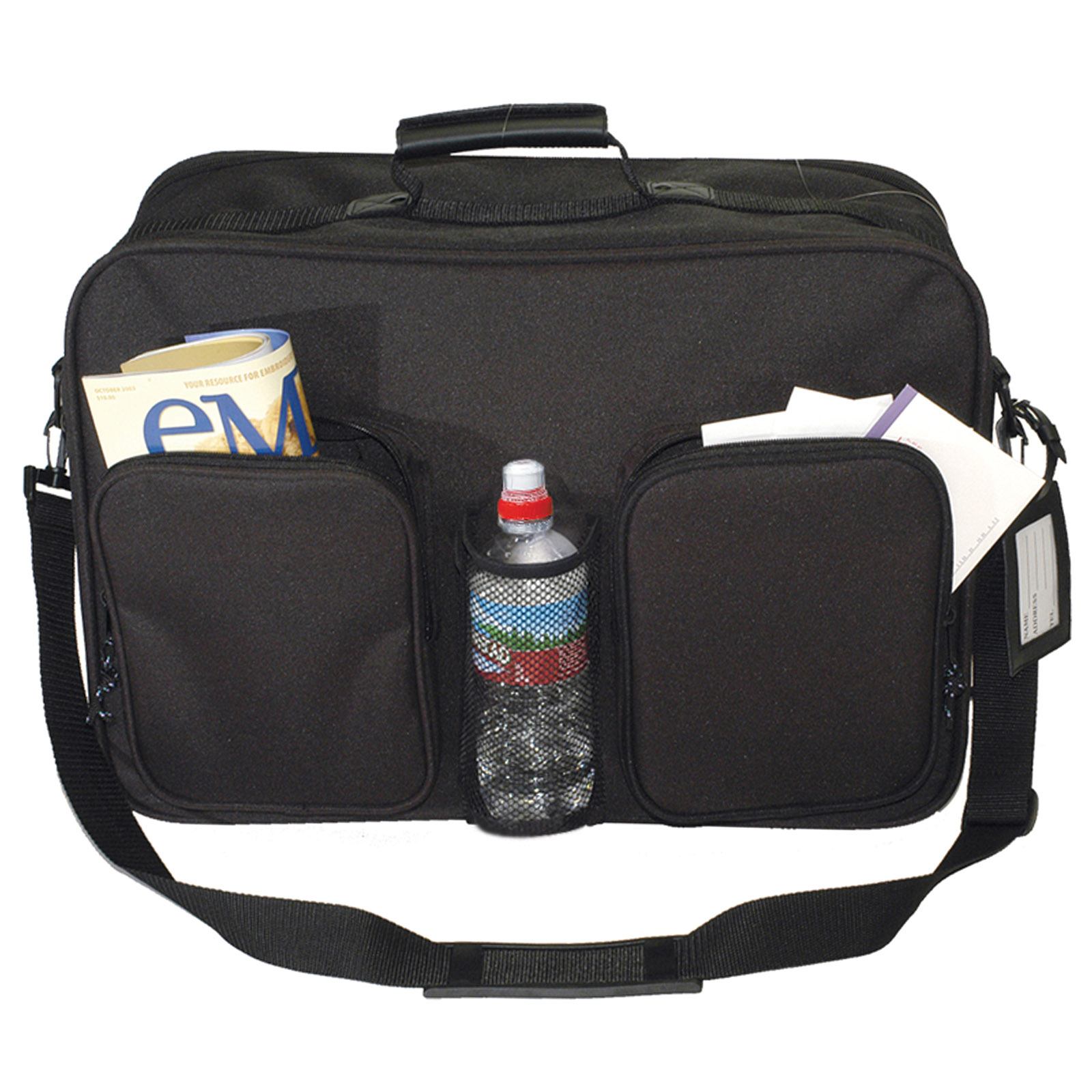 - Front pockets can be used for storing documents, files, catalogs, etc.